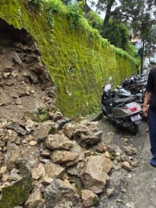 लंढौर बजार क्षेत्र में पुश्ता ढहा, प्रशासन, पालिका अधिशासी अधिकारी ने किया निरीक्षण मसूरी। Devendra...