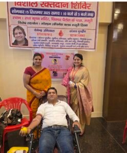 राधाकृष्ण मंदिर में रक्तदान शिविर का आयोजन किया जिसमें 165 लोगों ने रक्तदान कर महादान में अपनी भूमिका निभाई।