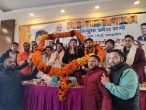 आर्यनदेव उनियाल के भाजयुमों के प्रदेश मंत्री बनने पर मसूरी में स्वागत