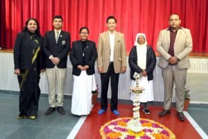 द्वारा दीप प्रज्वलन के साथ किया गया। जिसके पश्चात प्रार्थना एवं सांस्कृतिक प्रस्तुतियाँ दी गईं। कक्षा दसवीं के विद्यार्थियों द्वारा प्रस्तुत युद्ध की कीमत पर आधारित माइम एक्ट ने शांति के महत्व का सशक्त संदेश दिया। एलकेजी से कक्षा बारहवीं तक के विद्यार्थियों को शैक्षणिक उत्कृष्टता के लिए पुरस्कृत किया गया तथा विशेष उपलब्धियों के लिए भी पुरस्कार प्रदान किए गए। सांस्कृतिक नृत्य प्रस्तुतियों ने कार्यक्रम में रंग और उत्साह भर दिया, जो हमारी समृद्ध परंपराओं को दर्शाती हैं। इस मौके पर अपने संबोधन में मुख्य अतिथि आयुक्त दीपक रावत ने शांति और संस्कृति के महत्व पर प्रकाश डाला तथा विद्यार्थियों को सद्भाव और एकता के मूल्यों को अपनाने के लिए प्रेरित किया। उन्होंने यह भी कहा कि सच्ची शिक्षा केवल ज्ञान प्रदान नहीं करती, बल्कि जिम्मेदार और संवेदनशील नागरिकों का निर्माण भी करती है। साथ ही उन्होंने विद्यार्थियों को वर्तमान डिजिटल युग में मोबाइल फोन का समझदारी से उपयोग करने की सलाह दी और समय निकालकर पैदल चलने तथा वास्तविक दुनिया से जुड़ने के महत्व पर बल दिया। इस अवसर पर प्रधानाचार्या सिस्टर आइवी एवं सुपीरियर सिस्टर अनीता मैथ्यू, समन्वयक सुश्री रेखा सिंह और सुश्री नंदिनी सिंह सहित अनेक पूर्व छात्र व अभिभावक भी मौजूद रहे।